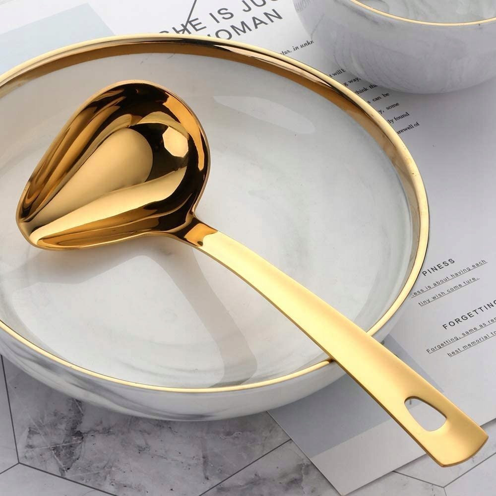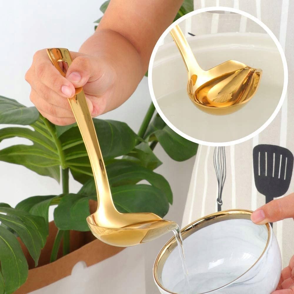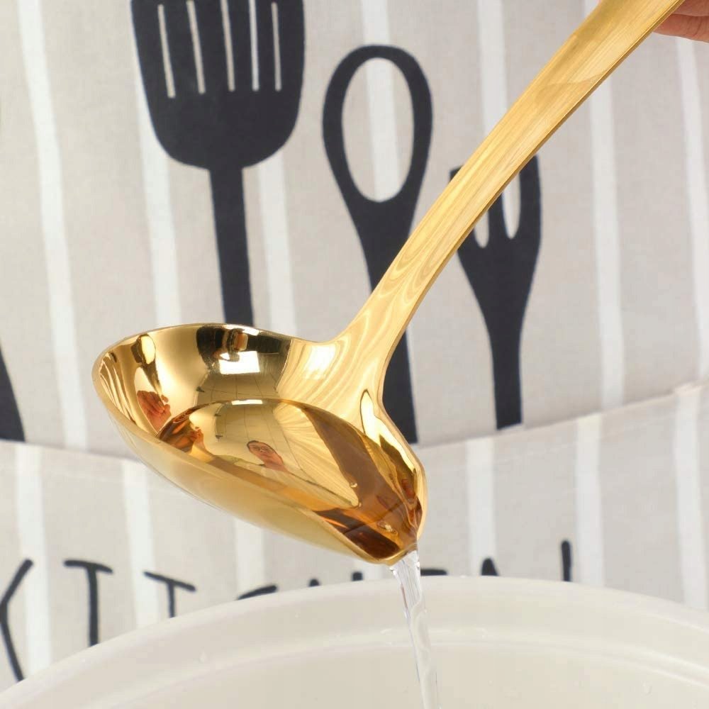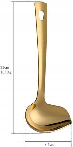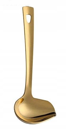 Piękna i bardzo solidnie wykonana chochla do sosów lub zupy w kolorze złotym. Kolor złoty połysk - idealnie wypolerowana, powłoka tytanowa.