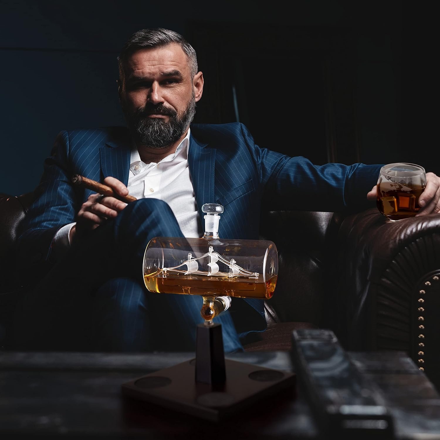 🛳️ styl marynistyczny – ozdoba salonu i półki barowej (statek w karafce)