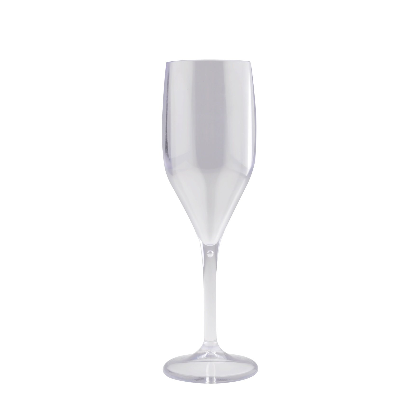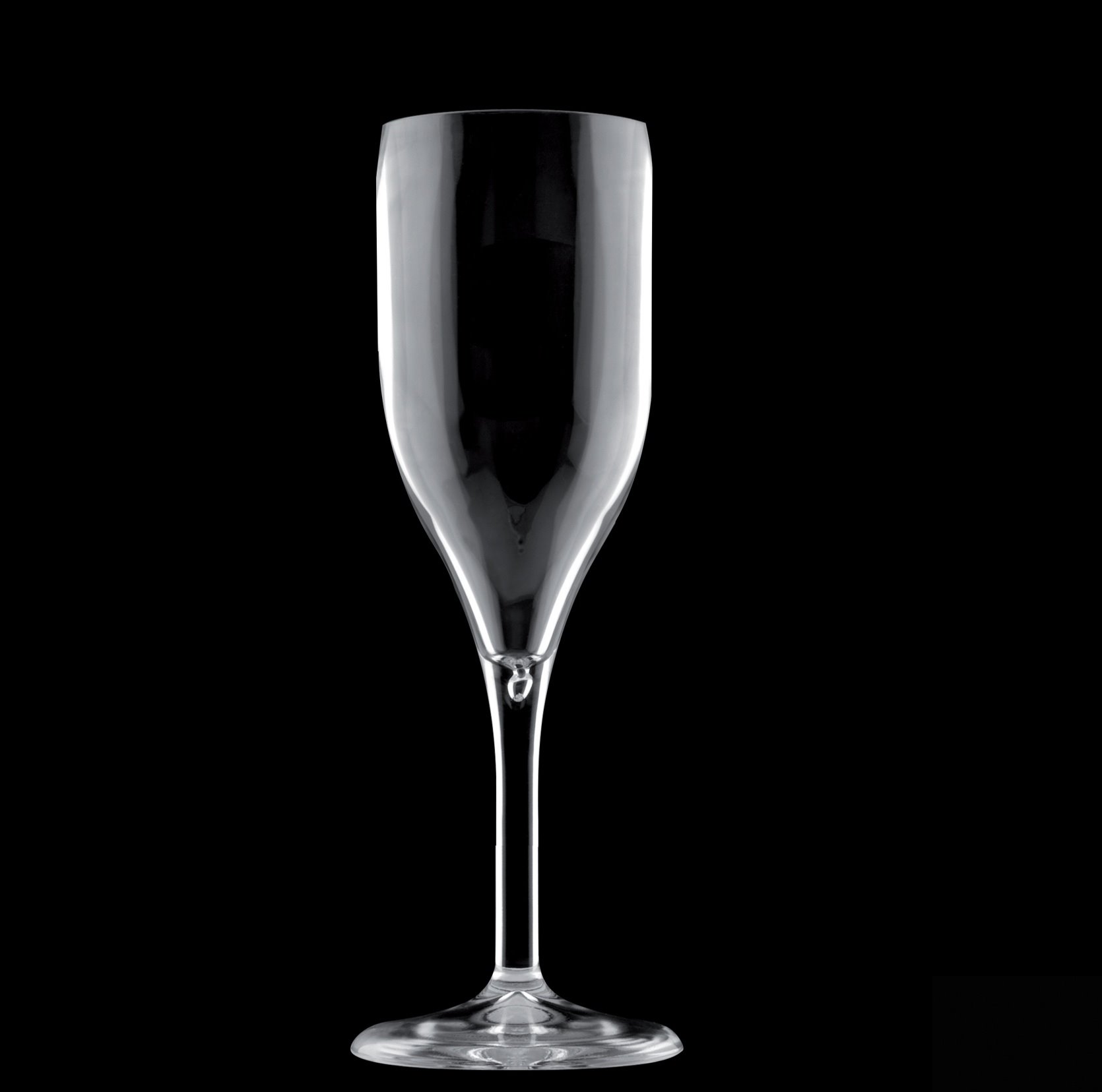 Profesjonalny kieliszek do szampana 150 ml — wygląda jak szkło, pracuje jak narzędzie HoReCa. SAN, nietłukący, wielorazowy, do zmywarki (do 500 myć).