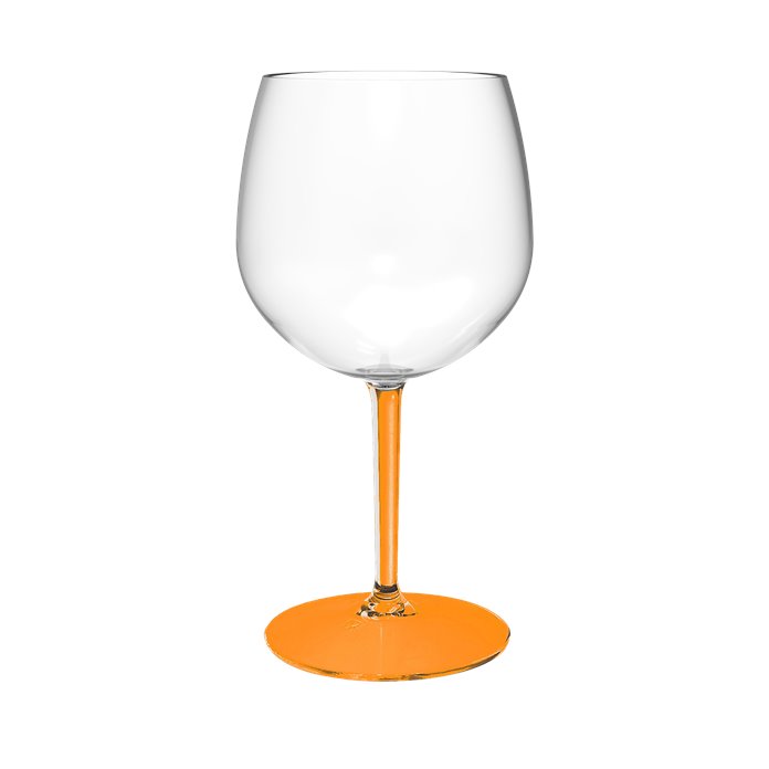 Elegancki, transparentny kieliszek z pomarańczową nóżka 550 ml wykonany z Tritanu – profesjonalna alternatywa dla szkła, idealna do wina, prosecco i koktajli. Nietłukący, wielorazowy, do zmywarki (do ok. 350 cykli) i produkowany we Włoszech – stworzone dla gastronomii, eventów i wymagającego klienta premium.