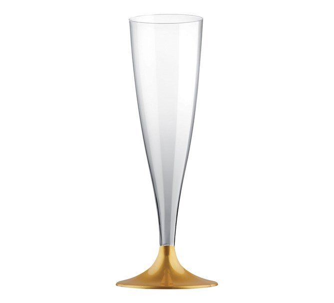 Smukły kieliszek szampański 100 ml z linii Flute Easy w kolorze złotym. Lekki, „no-glass friendly” i wielorazowy – świetny do prosecco, szampana i toastów na sali i w plenerze. Zmywarka PRO – tak (ok. 125 cykli).