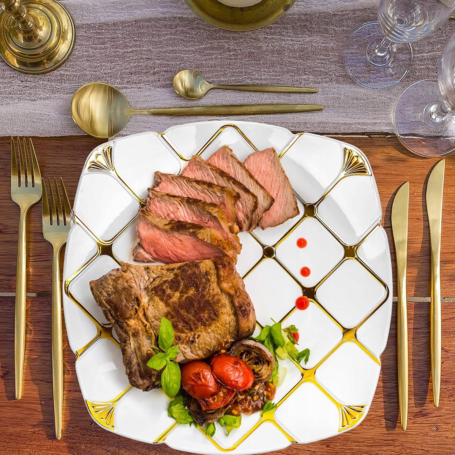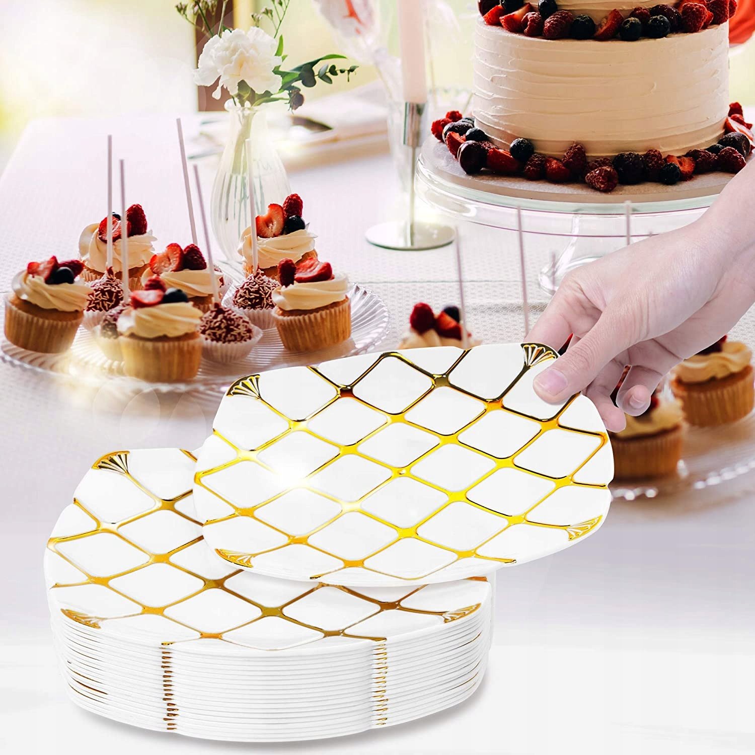 - Elegancja – nasze wielofunkcyjne talerze ze złotą krawędzią zapewniają elegancję na każdej imprezie.