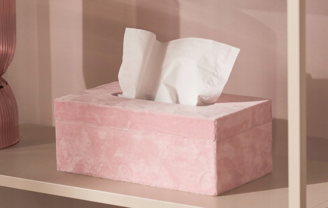Dekoracyjne pudełko na chusteczki. Mieści standardowe opakowanie.