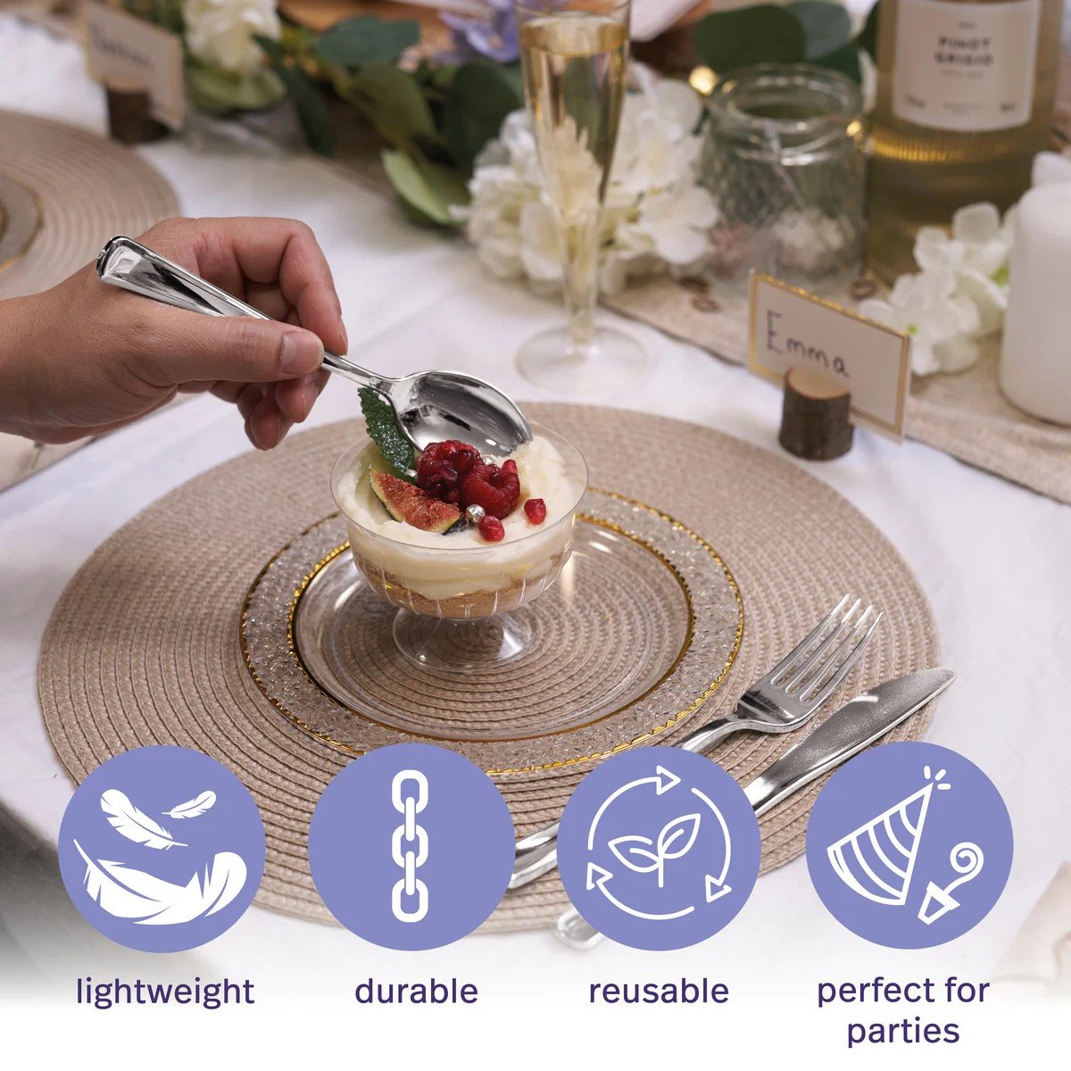 Elegancki srebrny kolor – efektowny wygląd, który świetnie komponuje się z dekoracjami stołu.