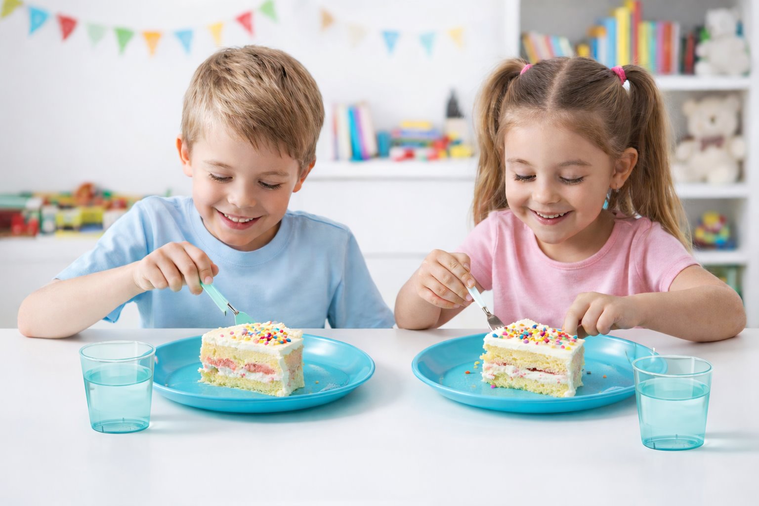 Kolor, który robi klimat 🎉 Niebieski talerz od razu podkręca dekoracje urodzinowe, a przy tym jest po prostu wygodny – używasz, wrzucasz do zmywarki i gotowe.