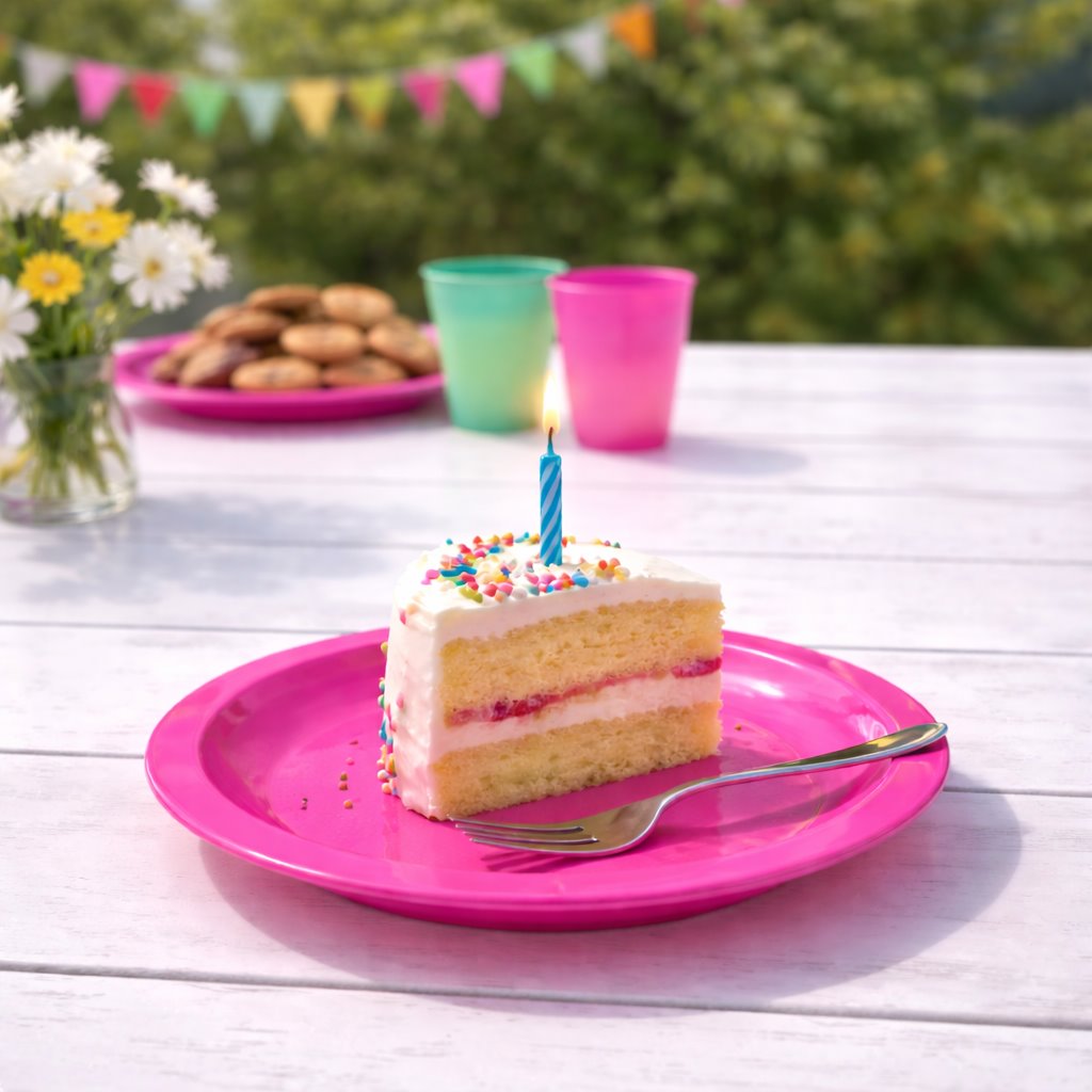 Kolor, który robi klimat 🎉 Różowy talerz od razu podkręca dekoracje urodzinowe, a przy tym jest po prostu wygodny – używasz, wrzucasz do zmywarki i gotowe.