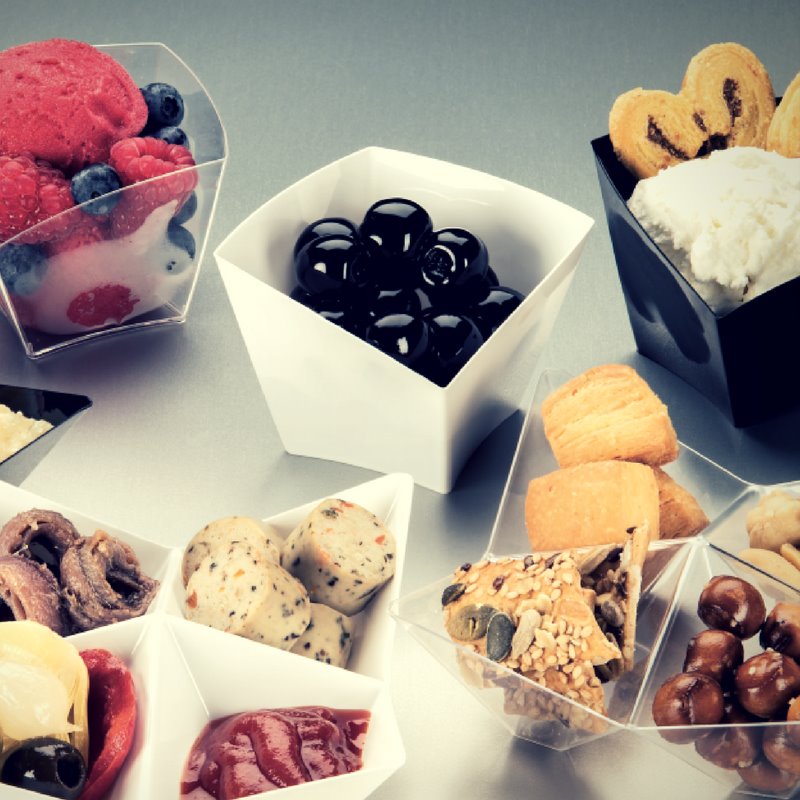 - Kolor: czarny – podbija prezentację, kontrastuje z jasnymi potrawami.