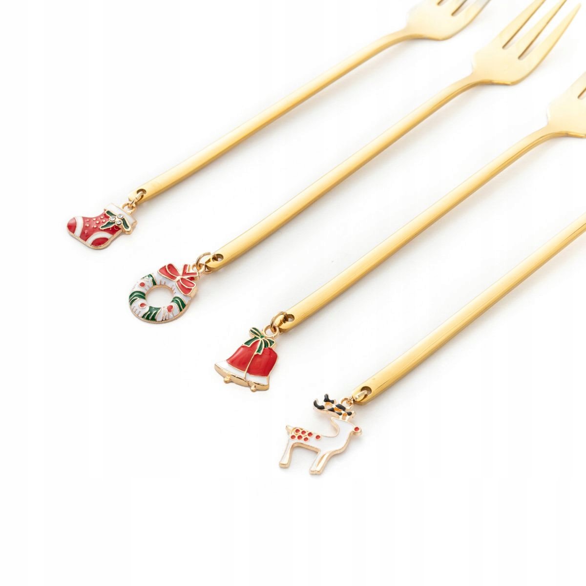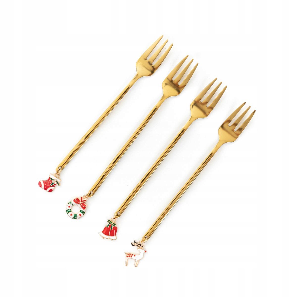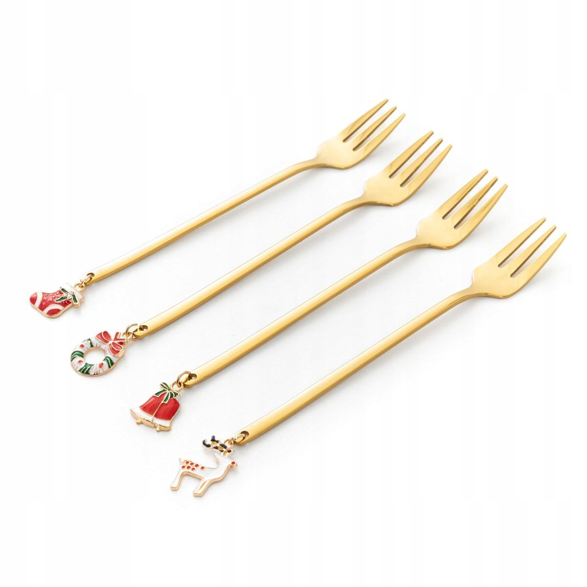 Wyjątkowy zestaw 4 złotych widelczyków z zawieszkami