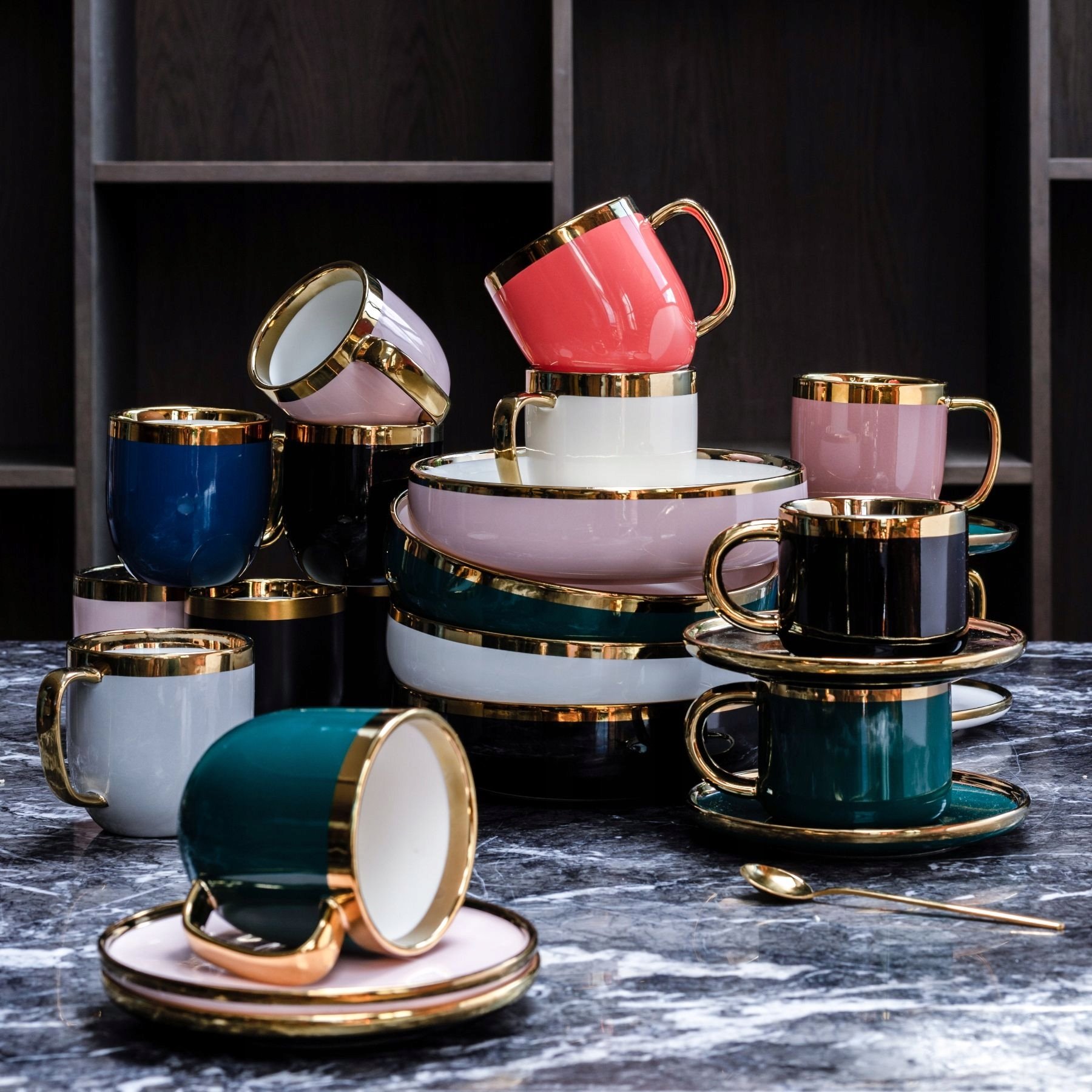 Kubki są ręcznie malowane, co czyni je unikatowymi i może wpłynąć na niejednakowe złote zdobienie na różnych kubkach.